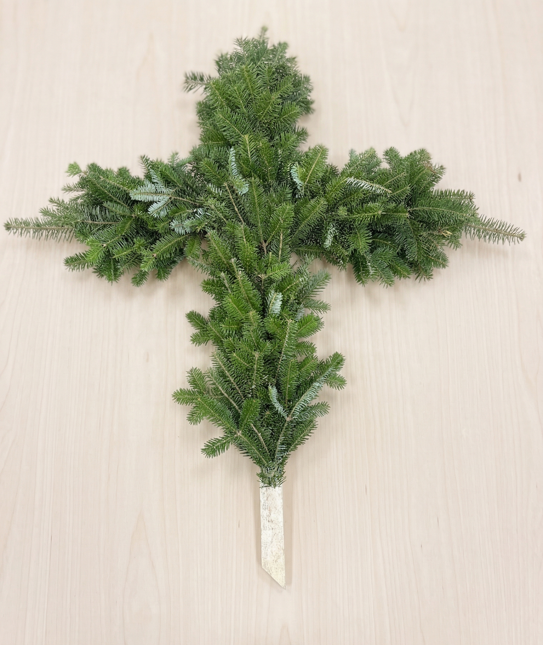 Every fresh balsam cross is accented with seasonal details—such as festive ribbons, pinecones, or berries—giving it a classic holiday style while maintaining a natural, rustic charm. The balsam branches are selected for their long‑lasting freshness, ensuring your arrangement remains vibrant throughout the winter months.