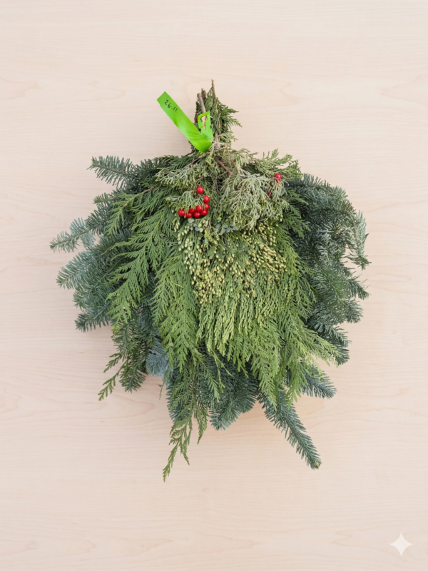 A fresh evergreen swag designed for door décor, made with mixed seasonal foliage and accented with pine cones, ornaments, and a decorative bow. Full, vibrant, and ready to hang for an instant holiday touch.